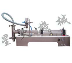 該機為半自動活塞式液體灌裝機。