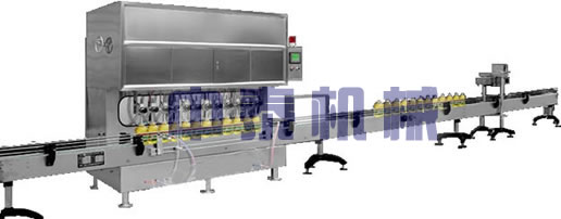 此設(shè)備是灌裝、燈檢、自動(dòng)輸送、自動(dòng)感應(yīng)壓蓋于一體的自動(dòng)油類灌裝充填機(jī)械。